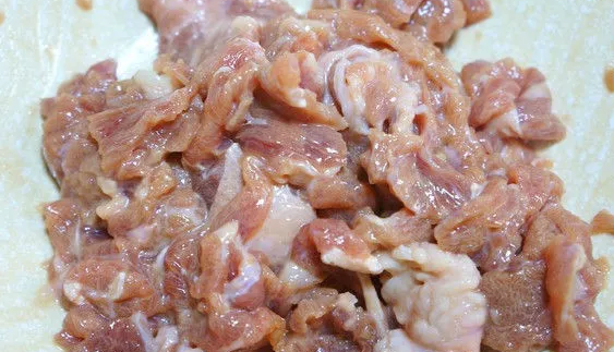 4、让牛肉腌制一会儿,剥笋备用。