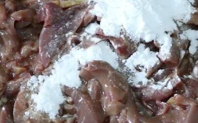 3、将腰花捞出沥水,加盐、料酒、白胡椒粉、酱油搅拌片刻,加姜丝、生粉搅拌均匀;