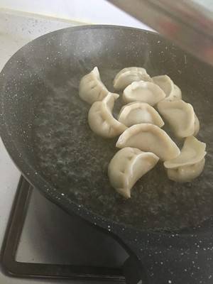 5、准备完之后,把这半碗水倒入锅中,没过饺子的底部就可以。