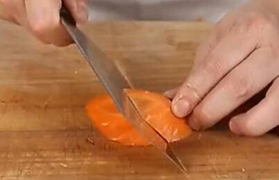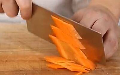 最佳答案:首先把胡萝卜平放在案板上,用刀将胡萝卜斜切一刀,再把胡萝卜切面向上翻,再在胡萝卜切面的二分之一处斜切一刀。然后把胡萝卜上一次的切面朝上面翻,然后不断地一翻一切,一翻一切,就可以把胡萝卜切成片状。