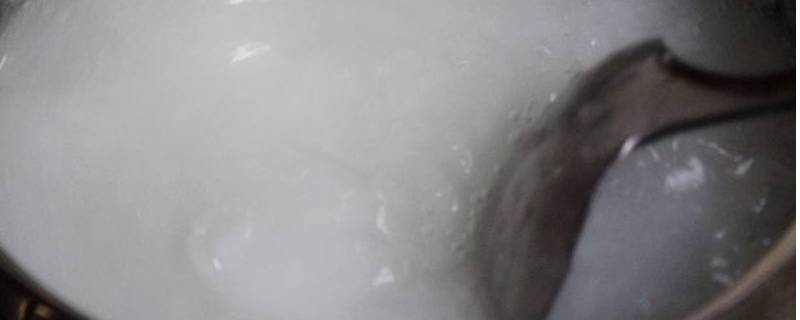 2、烧开水,倒入大碗中搅匀,放置室温,自然凝结。凝结后切成小块,倒入红糖水。