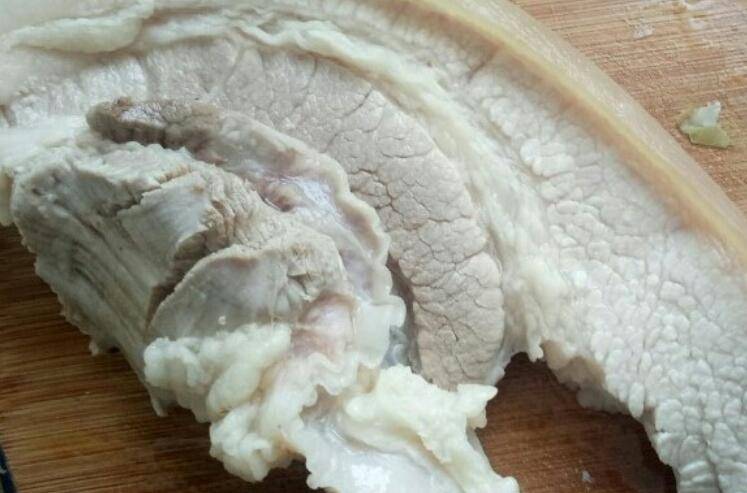 3、笋淖水,五花肉加姜片、料酒煮透,洗干净,把毛拔干净。