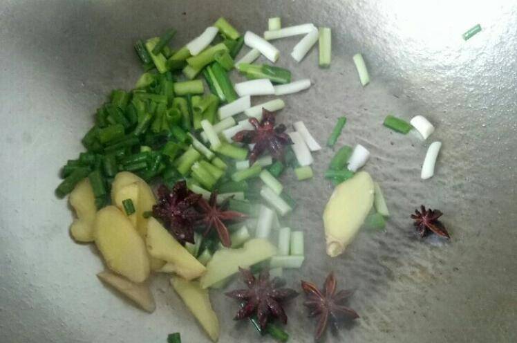 5、热锅冷油,爆香葱姜大料。
