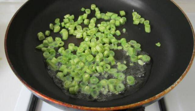 2、锅内热油,下葱末炒香。