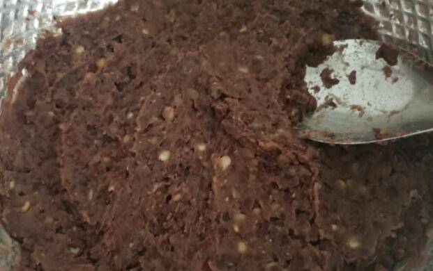 4、入锅炒制。先放猪油和白糖,待糖几乎化开,放豆沙炒制,炒干即可出锅。做完放入冰箱,随用随取,很方便。