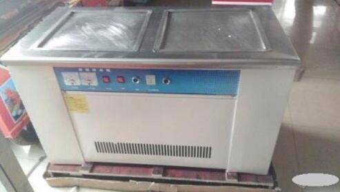 2、打开炒奶果机,等到机器上面结出一层薄薄的白霜之后,倒入牛奶和草莓。