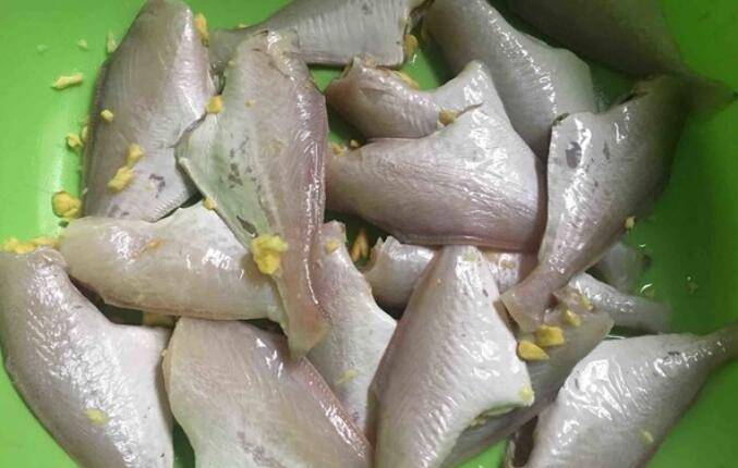 1、将解冻后的耗儿鱼清洗干净,用料酒、盐码味去腥。豆芽和鱼分别下水焯一下,捞出。