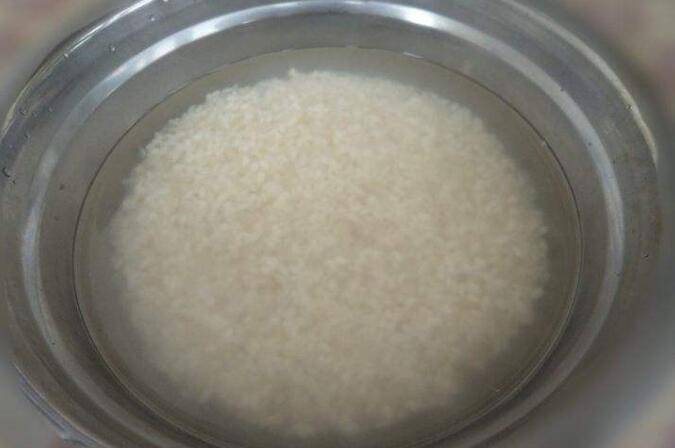 2、泡米:先把米在冷水里浸泡1个小时。这样可以让米粒充分的吸收水分。这样蒸出来米饭会粒粒饱满。