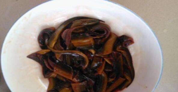 1、鳝片加盐揉搓后,用清水洗涤干净,斩去头尾,再切成6厘米长的段。