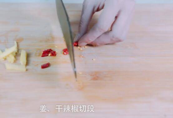 做法:姜、干辣椒切段,将白、胡萝卜切条。
