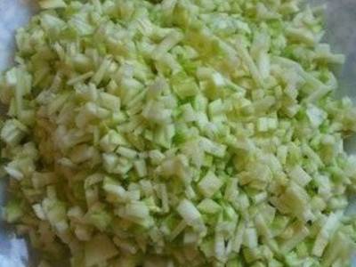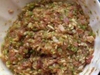 笋瓜切碎待用,肉馅中放入花椒水,拌匀。