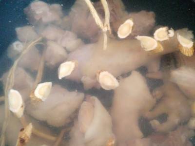 锅中放入鸡肉、黄芪、党参、莲子、姜块、清水,大火煮开后转小火慢炖2小时。