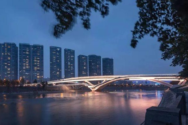 成都网红桥在成都市高新区南部园区府河沿线,分别上下两部分,其中主桥位于上方,可以供自行车通行,而副桥位于下方,主要为市民提供观河的地点,桥体与莫比乌斯环形状相似,是我国第一座异形拱桥。
