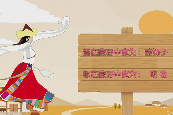 雪顿节是西藏最隆重的节日,而“雪”在藏语中是“酸奶子”的意思,“顿”在藏语中的意思是“吃”、“宴”的意思,按照藏语解释雪顿节是吃酸奶子的节日,因此雪顿节也被叫做“酸奶节”。