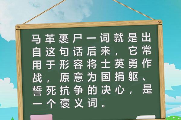 马革裹尸一词就是出自这句话,后来,它常用于形容将士英勇作战,原意为国捐躯、誓死抗争的决心,是一个褒义词。