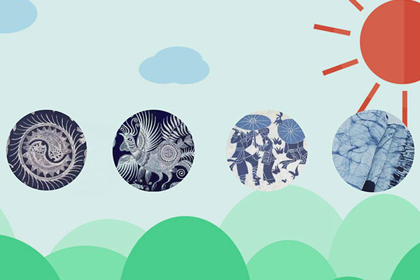 蜡染图案丰富,颜色素雅,表面常呈蓝底白花或白底蓝花等图案,且带有特殊的冰裂纹,风格十分独特,常用于制作服装服饰或生活用品。