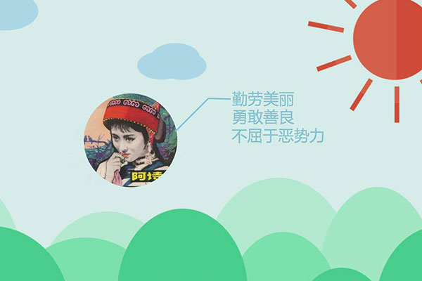 阿诗玛是彝族人物,她源于彝族文学《阿诗玛》,是一个勤劳美丽,勇敢善良,不屈服于恶势力的女孩。