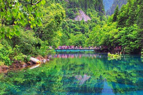 九寨沟的主要景点有“翠海”、“叠瀑”和“彩林”,它的湖泊始终清澈见底,湖水闪着粼粼的波光。由于地势骤变,九寨沟有许多的瀑布且交错相叠,形成了一道亮丽的风景线,林区面积广布,山中有各类奇花异草和珍稀动植物。