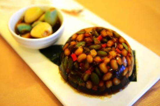 在北方人的年饭里,还有一道不得不提的传统菜品“豆儿酱”,尤其是对于北京人来说,这道菜更是家喻户晓。豆儿酱是由肉皮、豆腐干、黄豆、青豆、水芥做成的一种凉菜,这种凉菜清爽可口,非常适合用来开胃。