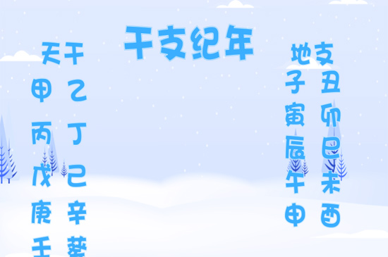 干支纪年中有甲、乙、丙、丁、戊、己、庚、辛、壬、葵共十个天干;地支有子、丑、寅、卯、辰、巳、午、未申、酉、戌、亥共十二个。每一个天干和地支组成一个轮回年之后就是六十年,如1960年、2020年、2080年都属于庚子年。