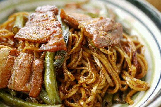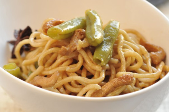 豆角焖面是我国北方特色食物,也是北方传统小吃之一。豆角焖面是由水蒸气将面条闷熟,并且加入一些豆角和肥肉烹饪而成,豆角焖面的面条非常筋道,口感爽滑并且嚼劲十足,豆角脆嫩,充满咸香,深受北方人欢迎。