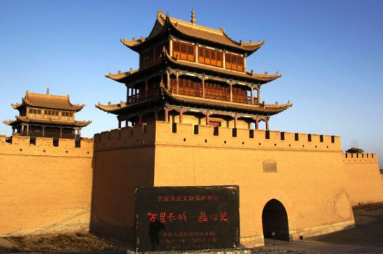 嘉峪关被称为天下第一雄关,是明代修建的万里长城西端的起点,至今已有647年的历史,位于嘉峪关最狭窄的山谷中部,城墙两翼横穿沙漠与南北相邻的山峰相连,以险要的地势和巍峨壮观景色闻名,与天下第一关山海关遥相呼应。
