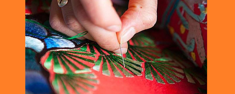 汉绣是武汉传统特色刺绣,是以楚绣为基础的一种特色绣法。汉绣吸取楚绣特点,又融入了南北刺绣的特色,再加上武汉特色的文化后,绣品享誉天下。汉绣以“平金夹绣”为主,色彩鲜艳、花纹多变,并且还具有很强的装饰性。