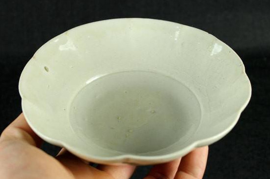 定窑以烧白瓷为主,因此釉色多以白色为最佳,也有少量的黑釉、酱釉、绿釉等等颜色。定窑的花纹一般是刻、印、划出来的花纹,虽然颜色较为朴素,但是定窑的白釉花纹还是比较丰富的,且定窑有芒,器皿中部无釉。