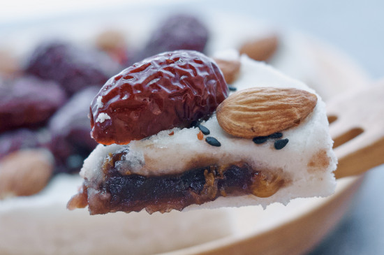 重阳糕又名花糕、菊花糕,具有丰富的馅料和口感,是重阳节代表食物之一。制作重阳糕的时候,要把糕堆起来,具有登高(糕)的意思。食用重阳糕的时候还要默念祈愿,有些重阳糕上面还要做成两只小羊,具有重羊(阳)的意义。