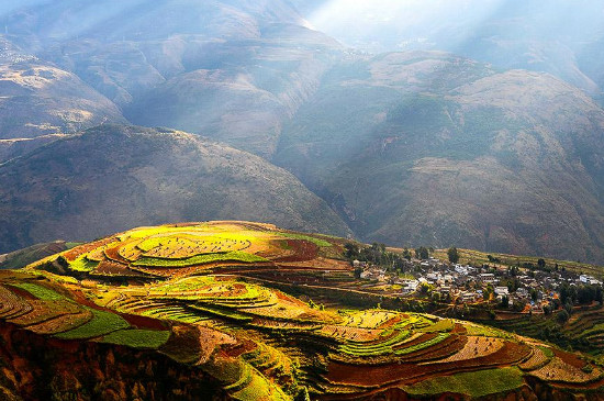 云南东川位于云南省的省会昆明,是昆明市内的北边区域。东川区位于云贵高原北部,最高海拔可以达到4344.1米,面积共1858.79平方千米,有31万常住人口。东川区有着典型的深切割高山,其中东川红土地是红土高原最集中的地区。