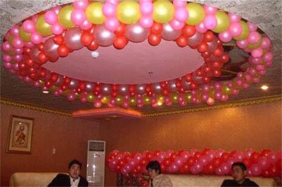 若想婚礼上的气球飞到屋顶时,最好选用氢气球或者铝膜气球,之后在里面冲入氦气,这样气球就会自动的飘在空中,给人一种浪漫梦幻的感觉,若是用普通的气球是只能落在地面上的,之后可以适当的加一些彩带,以增加视觉效果。
