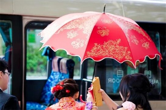 而结婚的红伞还寓意着为新人排出一切的困难,希望夫妻开始一段美好的幸福生活,而伞之所以选成红色,主要是红色是我国公认最为吉利的颜色,这样能增加喜庆的气氛,还能起到辟邪化难的作用,还有身体健康的意思。