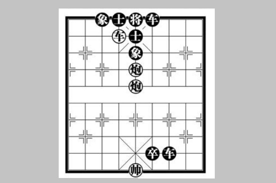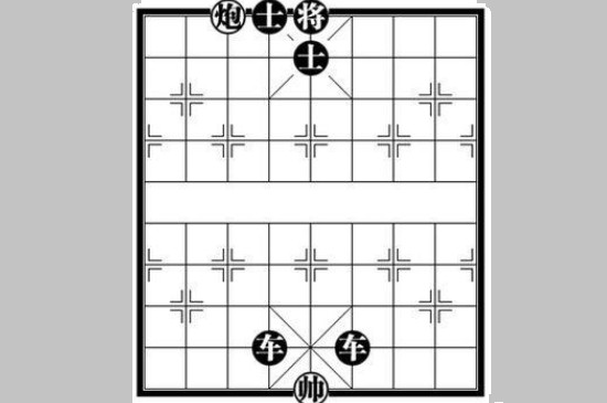 以下面几个图为例子,如图此时黑将被夹住不能左右躲开攻击,而且此时在纵列已经被炮将军,因此不能利用垫士的行为保护将。下面会出现两种情况:垫将,前炮跳杀;不垫,后跑跳杀,因此这是一种绝杀的走法,走到这一步一定必胜。