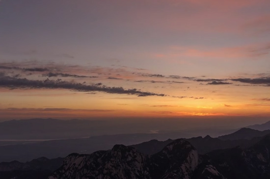 华山是陕西省的名片,是全国著名的风景名胜区,拥有苍龙岭、金锁关、西岳庙、鹞子翻身、华岳仙掌等众多著名的景观,以其险峻的地势而闻名天下,其中最佳观看日出的地点就是华山东峰的朝阳台,被列为黄河50景之一。