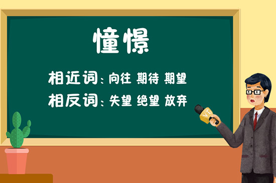 憧憬有很多相近词,如向往、期待、期望等;相反词有失望、绝望、放弃等词。由此来看,憧憬是一个含有积极成分的词语,可以应用的范围也相较广泛。
