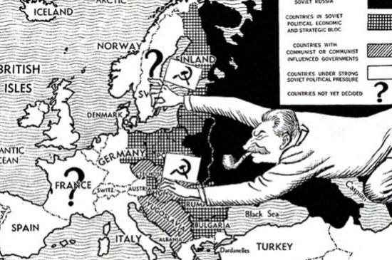 冷战开始的标志是美国提出杜鲁门主义。杜鲁门主义主要内容,是美国同意经济援助希腊、土耳其政府,以此来帮助政府镇压本地革命运动。这与美国之前的自由、民主宣言极其不符,被视为干涉别国内政,因此苏联认为这是美国对于苏联的威胁。