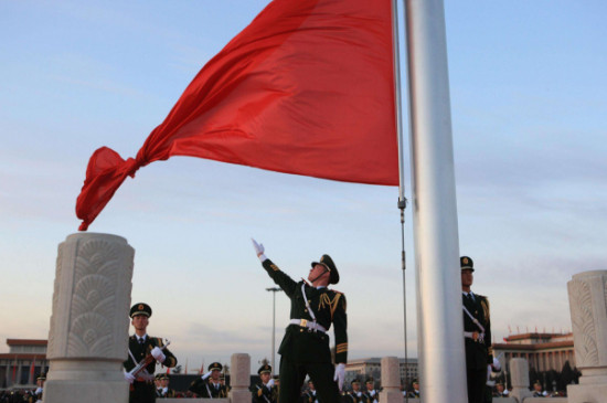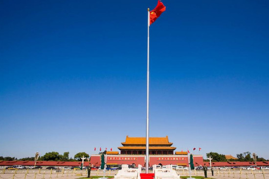 虽然旗杆变高了,但国旗的旗杆高度还是以28.3米作为标准。天安门的国旗杆下的基座也含有特殊的含义:第一层是汉白玉栏杆;第二层是赭石色的花岗岩,象征人民江山万代红;第三层有56个黄色铜柱连成的围栏,象征56民族团结在国旗下。