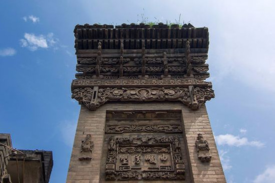 党家村四大建筑是文星阁、看家楼、泌阳堡以及节孝碑,文星阁位于村子的西南方向,阁中供奉着圣人和文学大家,记载着村中的历史和文化,看家楼在村子的最中央,有侦查和防御的作用,泌阳堡易守难攻,为了抵御盗匪而建。