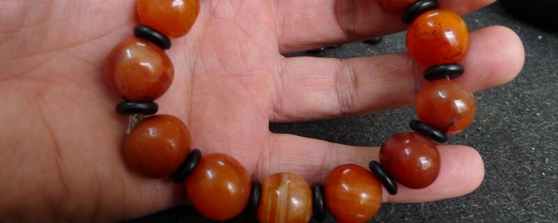 红色是玛瑙的一种主色,一般玛瑙呈褐红色、酱红色、黄红色。有些玛瑙颜色表现不均匀,像南红玛瑙,其内部就有红色的点,其表面的色泽光亮均匀,条带也十分明显,一直都深受较多人的喜爱。