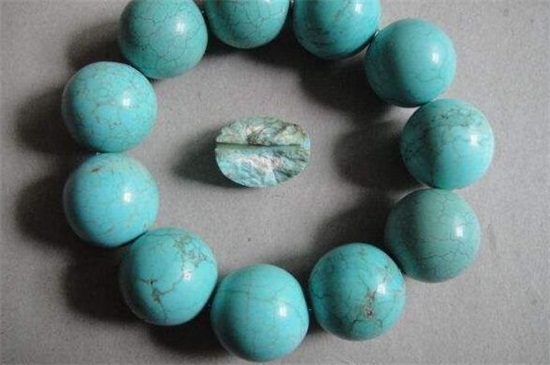 原矿绿松石入水颜色变深,并有气泡产生,但是假的绿松石入水颜色无变化,没有气泡,但是要要注意是原矿绿松石中一些高瓷结构致密的绿松石在浸水的时候变色会非常缓慢,极少气泡,甚至也不变色,无气泡。