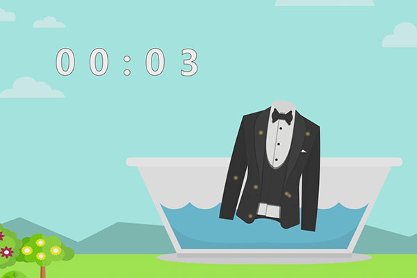 西服表面的污渍较多时,可以在凉水中加入洗衣液,把西服浸入,浸泡一段时间后,搓洗,然后漂干。