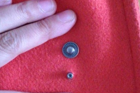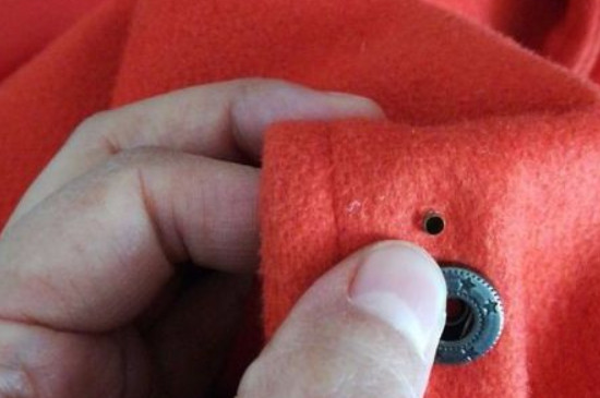 将里面的铆钉安装完成之后,把衣服外面的铆钉套也缝合好,尝试是否可以正常使用,如果没有问题的话,把内胆缝起来就行了。