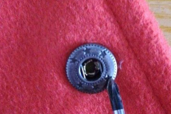 按扣坏了需要挑选一套新的完整按扣,必须要有一个卯和一个榫。确定安装按扣的位置之后,要把内胆剪开再缝合,这个妙招是为了提升衣服的美观性。把内胆剪开之后套上铆钉片,用螺丝刀撑开之后缝合即可,缝合完铆钉套之后记得检查按扣。