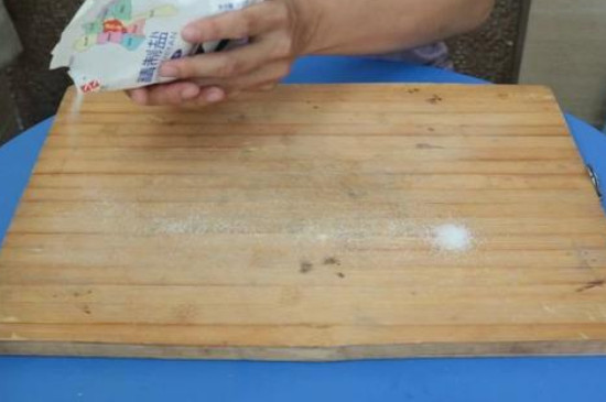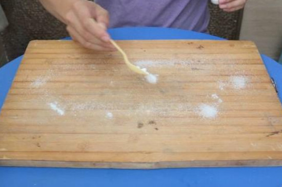 将案板内的杂质用食盐搓洗出来之后,继续用清水冲洗干净。把案板风干一段时间之后,再往案板上撒一层少量的小苏打,可以将案板内深层杂质析出。