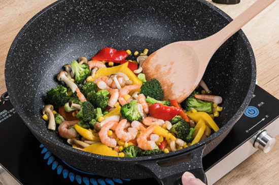 烹饪的时候,先用温火烧油,倒入食物和菜肴的时候,最好将表面的水分沥干,尤其是肉类。由于肉类基本都是从冰箱里拿出来的,因此会含有一部分的水,烹饪的时候可以先将肉的外表水分烧干,再加少许油进行烹饪。