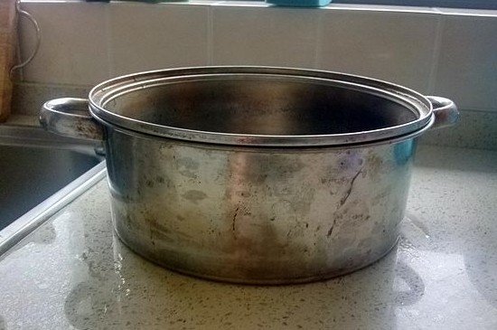 不管是不锈钢锅,还是不粘锅和铁锅,如果在使用的过程中沾上油垢了,这时可以将白醋、温水按照1:20的比例混合,浸泡有油垢的锅,白醋里的酸性成份,可以溶解掉油垢,清洗完成后,再使用清水重新冲洗干净。
