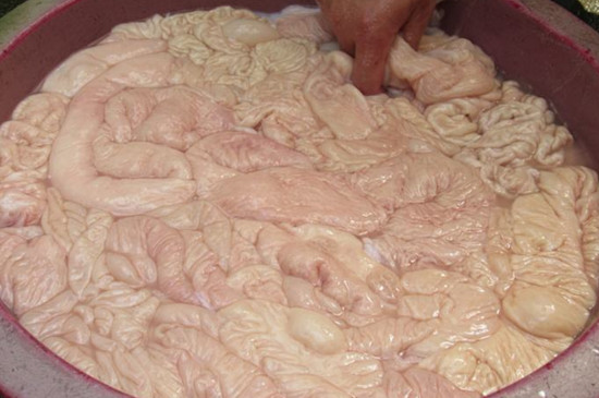 使用面粉搓洗能有效去除肥肠中的臭味,清洗前将肥肠中的肥肉剔除,将其中的脏东西清洗干净,之后便可将其翻过来放在面粉中抓洗,多搓洗几遍,直至臭味去除。
