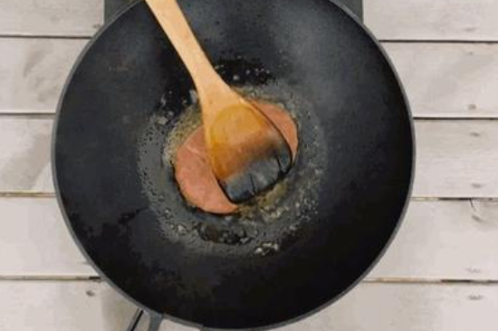 往烧焦的锅底均匀撒上盐巴,之后将锅具放在燃气灶上开火加热,同时用锅铲不断翻炒焦渍和盐巴,焦渍就会转和盐巴结成块状,最后将所有残渣倒掉,锅底的焦渍就可以去除干净。