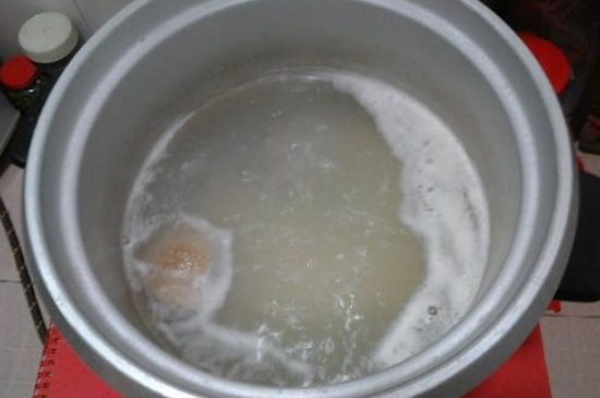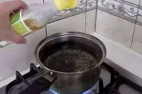 把食醋和水按照1:2的比例调和后,将醋水倒入锅内,醋水要淹过锅底被烧黑的部位,之后浸泡12小时左右,同样可以用抹布将锅底擦洗干净。
