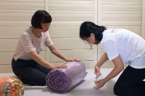 收纳被子可以将被子对折后卷成圆柱状,往上面套上旧衣服,或者是用保鲜膜沿着外面缠绕几圈,这样处理过的被子既不容易散掉,也能避免灰尘掉落在上面。